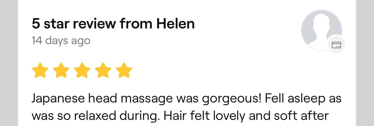 Includes a Head, neck and shoulder massage